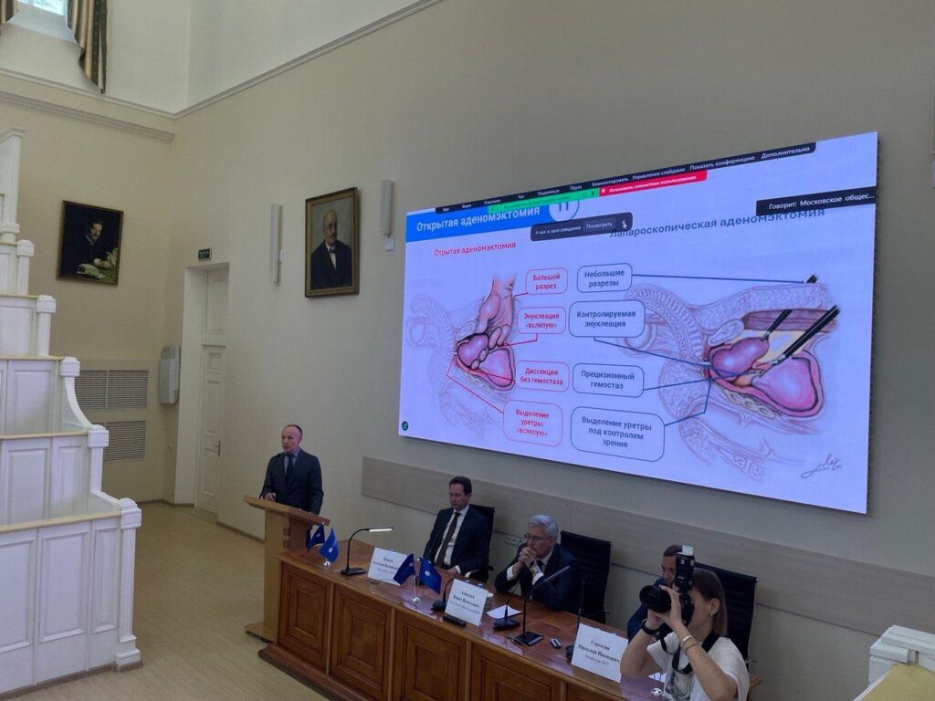 4 марта 2025 года в Сеченовском университете состоялось очередное заседание Московского общества урологов, посвященное лечению доброкачественной гиперплазии предстательной железы, на котором Ахмед Мухамедович Пшихачев, заместитель главного врача ЦКБ ГА по медицинской части, врач-уролог, онколог, доктор медицинских наук, и.о. заведующего и профессор кафедры «Урологии и общей хирургии медицинского института ФГБОУ ВО «МГТУ», член Российского общества урологов, онкоурологов, Российского общества по эндоурологии и высоким технологиям, Европейской ассоциации урологов, Секции роботизированной урологии Европейской ассоциации урологов выступил с докладом «Лапароскопическая и робот-ассистированная аденомэктомия».