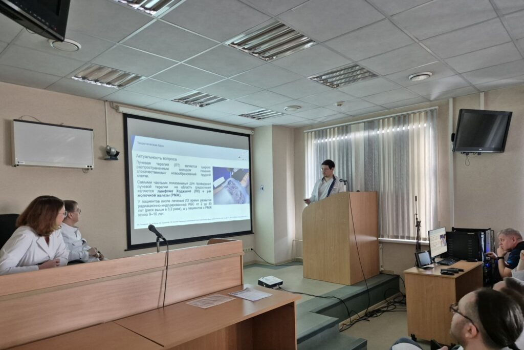 Затем выступил врач-кардиолог Егор Арсеньевич Мельничук с докладом «Радиационно-индуцированная болезнь сердца у женщин репродуктивного возраста». В докладе было освещено общее представление о проблеме и приведены 2 клинических наблюдения из архива кардиологического отделения ЦКБ ГА.