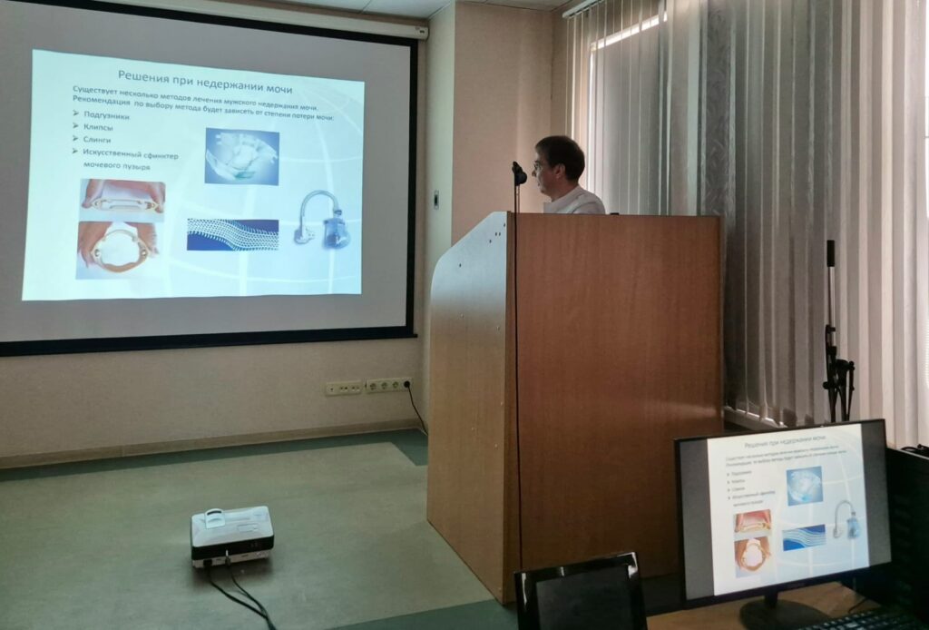 На очередной общебольничной конференции Виктор Борисович Филимонов, заместитель главного врача ЦКБ ГА по клинико-экспертной работе, доктор медицинских наук, профессор кафедры урологии и оперативной нефрологии с курсом онкоурологии Российского Университета Дружбы Народов им. П. Лумумбы рассказал о лечении недержания мочи у мужчин.