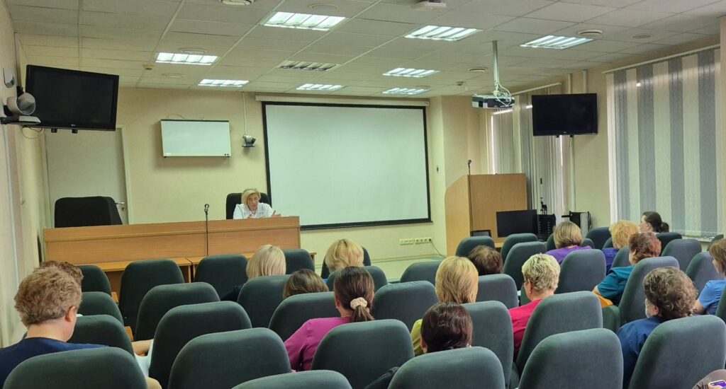 2. Заслушаны краткие доклады старших медицинских сестер об итогах работы отделений. Доклад старшей медицинской сестры отделения реанимации, где в настоящее время проводится тестирование отечественных аппаратов для автоматического дозирования дезинфицирующих средств. Дана положительная оценка в использовании данных устройств, что позволит максимально точно применять растворы дезинфектантов заданной концентрации, исключить человеческий фактор при приготовлении дезрастворов, необоснованное завышение и занижение концентраций приготовленных растворов и сохранять микробиологический пейзаж учреждения на эффективном уровне. 3. Главная медицинская сестра обратила внимание руководителей сестринских служб на продолжающиеся ограничительные мероприятия, связанные с ростом заболеваемости населения респираторными инфекциями, и рекомендовала провести очередную разъяснительную работу с пациентами и персоналом в целях соблюдения карантинных мероприятий.